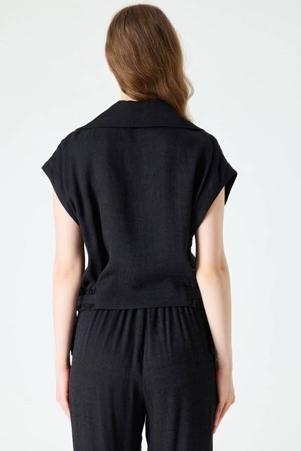 Toka detaylı açık yakalı gömlek ve Minimal toka detaylı elastik bel pantolon